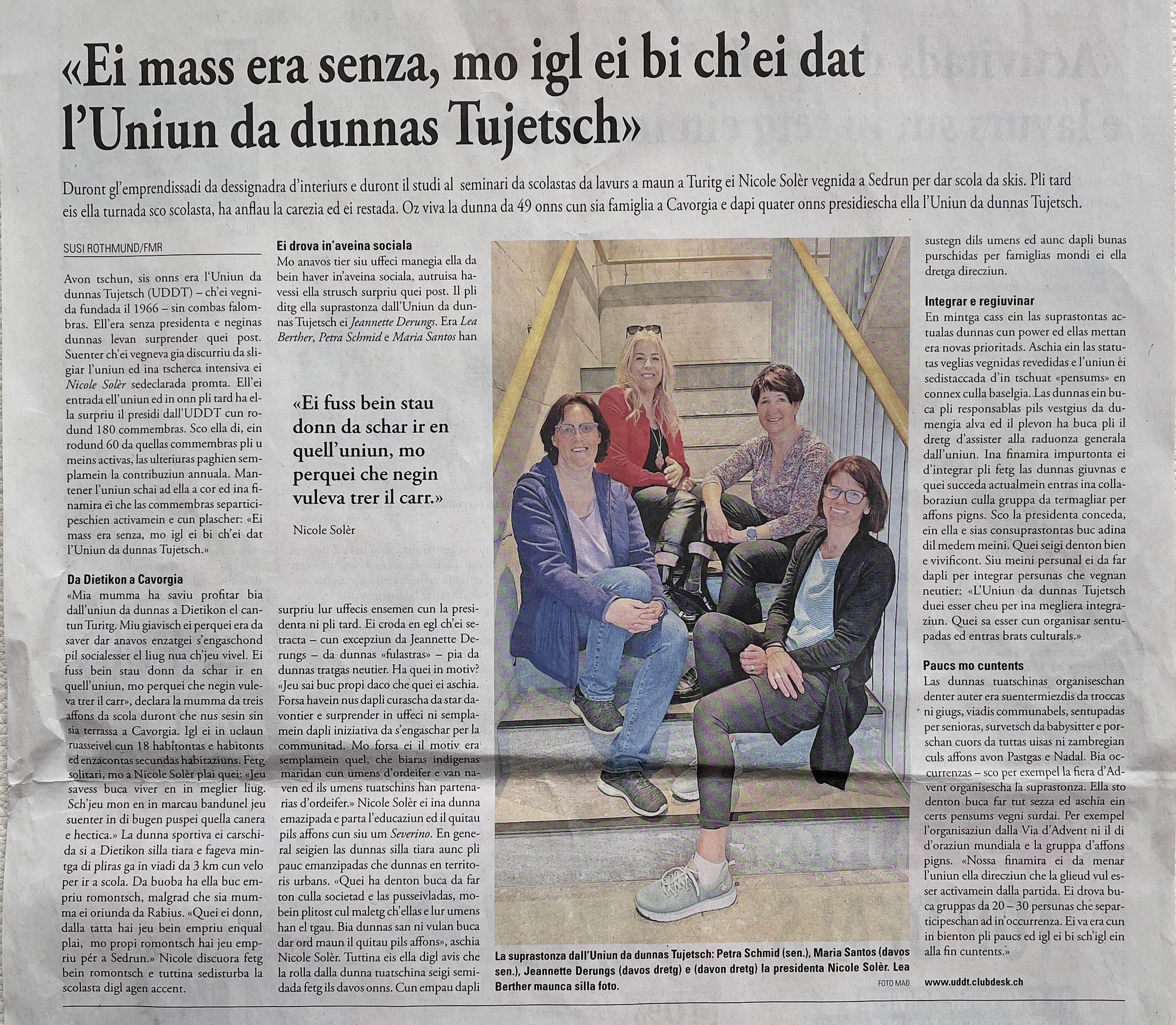 "Ei mass era senza, mo igl ei bi ch'ei dat l'Uniun da dunnas Tujetsch"